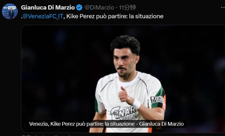 基科-佩雷斯可能离开威尼斯,因此多家意甲俱乐部正在密切体恤他的动态,其中就包括维罗纳,但并不啻这一家。