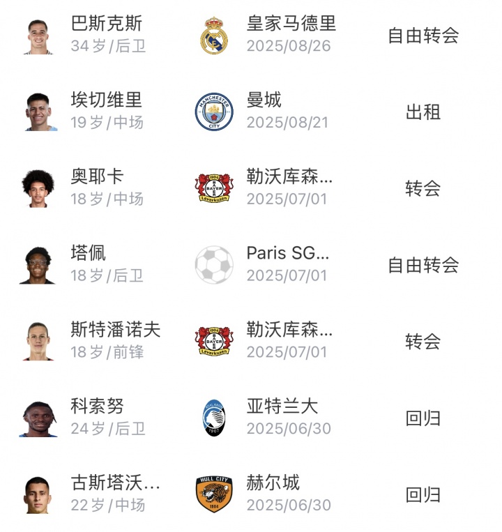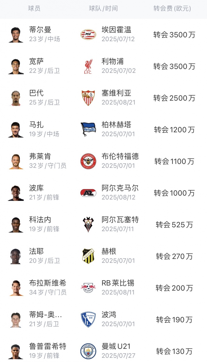 今夏,药厂已有17东说念主离队,其中有大皆上赛季的声势中枢球员,药厂凭借出售共赚得2.295亿欧;另有18东说念主加入球队声势,共浮滥1.41亿欧,新加入球队声势的18东说念主平均年齿仅22.2岁。