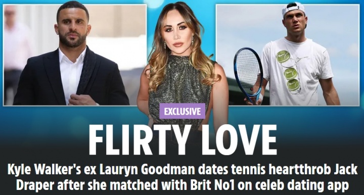 10月05日讯 太阳报独家报谈,凯尔-沃克之前的情东谈主劳伦-古德曼(34岁)与英国网球球员德雷珀(23岁)集会。