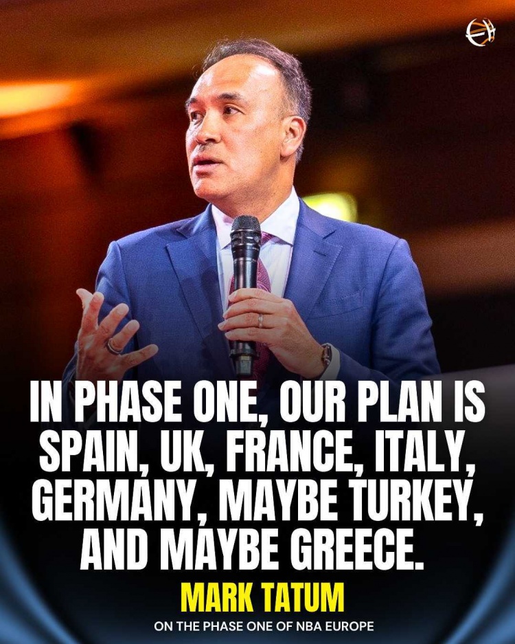 “NBA但愿在2027年正经驱动欧洲联赛,并计算与欧洲顶级俱乐部就此罢了公约,塔图姆莫得提到米兰奥林匹亚(意大利篮球俱乐部)和国米。”