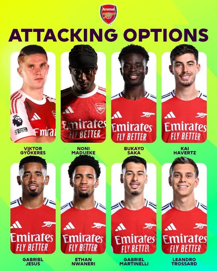 🔫火力怎样?阿森纳锋线:约克雷斯萨卡领衔,8东说念主总身价近5亿欧