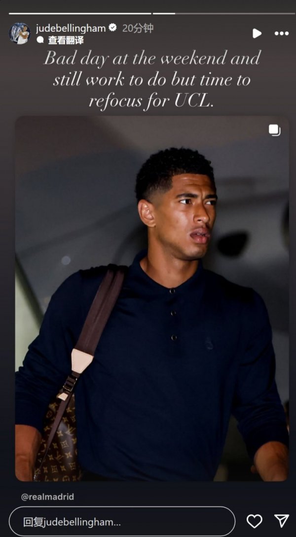贝林厄姆社媒:这个周末很倒霉,现时是时候再行专注于欧冠了