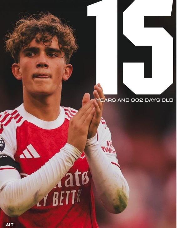 出路无量!15岁302天,谈曼成阿森纳队史最年青首发球员