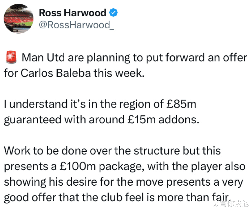 据悉,曼联行将向布莱顿送出报价,认真求购巴莱巴。其中8500万英镑是基础转会费,此外还有1500万英镑的附加条件,也即是说巴莱巴如果转会,总身价将达到1亿英镑。这个价钱,与布莱顿的心扉价位照旧相距不远,这也知道了曼联购买巴莱巴的诚意,他们不肯意花太多的时分和布莱顿拉扯,曼联但愿尽快管束巴莱巴,幸免影响新赛季的备战。
