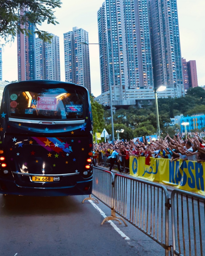 > 东谈主气太旺!利雅得得胜大巴赶赴赛场途中,沿街站满了C罗球迷