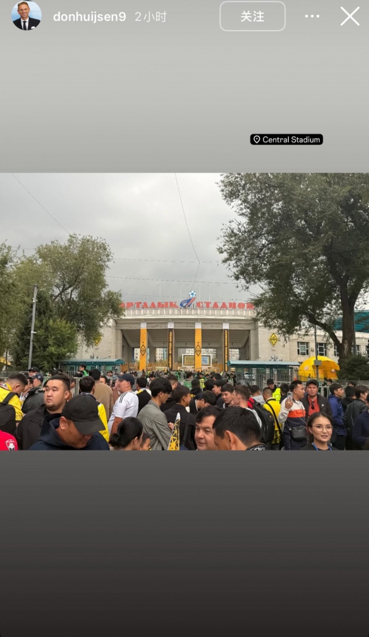 随犬子一同来到凯拉特客场,赫伊森父亲社媒晒阿拉木图街头随拍