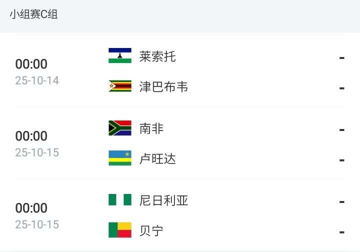 世初赛非洲区C组末轮赛程