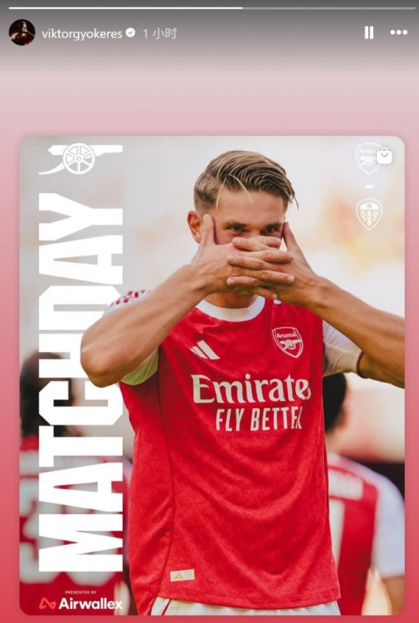 8月23日讯 本轮英超阿森纳将迎战利兹联。 阿森纳新援约克雷斯也在个东谈主社媒转发了个东谈主海报为本场比赛预热,海报中是其记号性庆祝行动。 约克雷斯在首轮英超推崇欠安被东谈主诟病,本场比赛也期待他轻率发挥我方。......查看更多