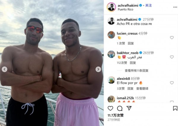 知友!姆巴佩&阿什拉夫晒共同度假照:波多黎各确凿出类拔萃!