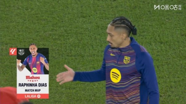 单刀球扳平比分!西甲官方:拉菲尼亚当选巴萨vs马竞全场MVP