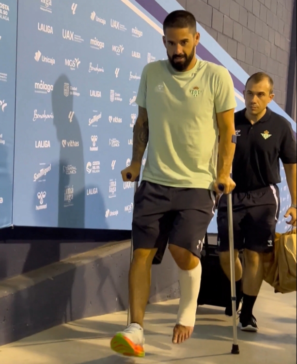 友谊赛贝蒂斯1-3不敌马拉加的比赛中,伊斯科遭拉鲁比亚背后狰狞放倒,赛后被拍到拄拐离开球场。