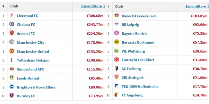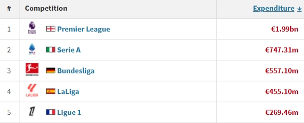 遥遥最先!英超7队今夏花超1亿欧,拜仁花7230万在英超排不进前十