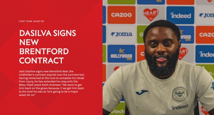 官方:布伦特福德中场达席尔瓦续约至赛季末,含延迟一年的选项