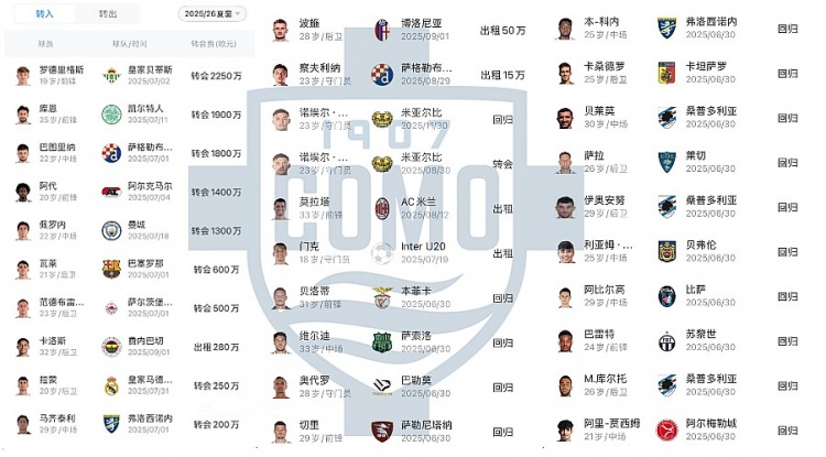 上赛季,科莫时隔多年后重返顶级联赛舞台,他们参加9770万欧元引援,不仅早早完成了保级任务,最终的排行还停留在了意甲积分榜上半区(第10名)。小试牛刀便获利巧合之喜,科莫在2025夏窗链接加大引援力度,他们浪费1.0765亿欧元引进了16名球员,净开销(9400万欧元)高居意甲诸强首位。