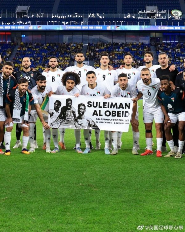 巴勒斯坦在对阵马来西亚的友谊赛中缅念念弃世的苏莱曼·奥贝德。 前巴勒斯坦国脚苏莱曼·奥贝德在以色列的一场空袭中遭难,长年40岁。 他在2016年和2017年王人是加沙的最好弓手,曾被誉为“巴勒斯坦贝利”。......查看更多