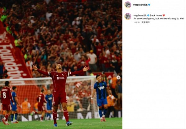 8月16日讯 英超揭幕战,利物浦主场4比2打败伯恩茅斯,赢得开门红。 赛后,范迪克更新社媒晒照庆祝球队见效,并配文写说念: 回到主场❤️ 这是一场充满神志的比赛,但咱们找到了赢球的神志!......查看更多